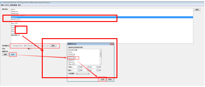 1、進(jìn)入分析器,設(shè)置瀏覽器的路徑(將會(huì)使用該瀏覽器打開(kāi)分析圖),點(diǎn)擊【生成】按鈕,彈出生成報(bào)告配置對(duì)話(huà)框,選擇需要生成報(bào)告的場(chǎng)景名稱(chēng),設(shè)置開(kāi)始與截至日期(不選擇的話(huà)默認(rèn)場(chǎng)景執(zhí)行的全部時(shí)間),設(shè)置報(bào)表統(tǒng)計(jì)時(shí)間間隔,點(diǎn)擊【生成】按鈕