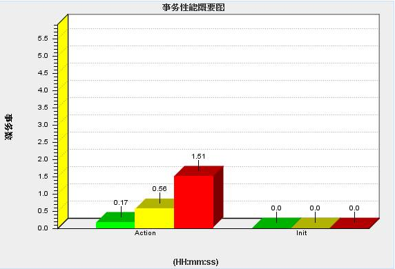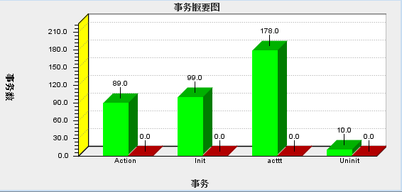 2、事務(wù)概要圖,橫軸代表不同的事務(wù),縱軸代表各個(gè)事務(wù)執(zhí)行成功和失敗的次數(shù)(綠色代表成功,紅色代表失?。?/p>