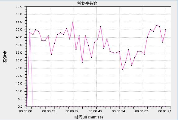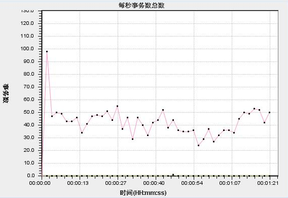 4、每秒事務(wù)數(shù)圖,橫軸代表時(shí)間,縱軸代表每秒通過(guò)事務(wù)數(shù)。