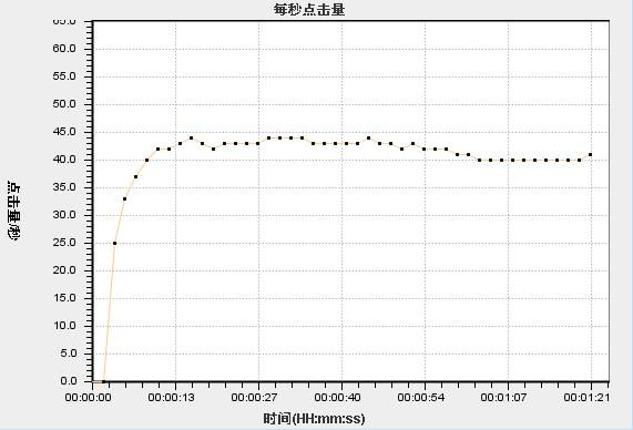 7、每秒點(diǎn)擊量圖,橫軸代表時(shí)間,縱軸代表每秒執(zhí)行的請(qǐng)求數(shù)