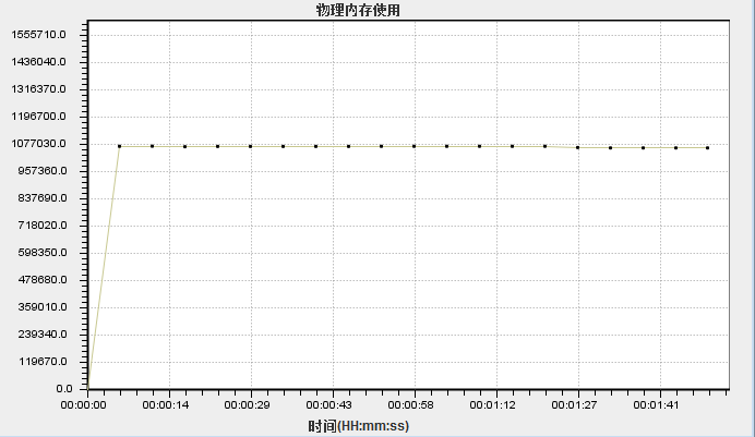 11、物理內(nèi)存使用:橫軸代表時(shí)間,縱軸代表內(nèi)存使用情況(單位:字節(jié))