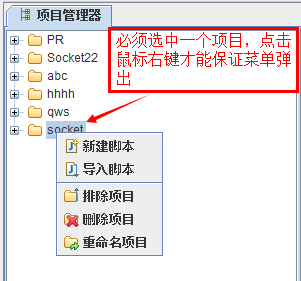 首先需要選擇一個(gè)項(xiàng)目,才可以新建、導(dǎo)入腳本