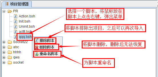 - 排除的腳本沒(méi)有被徹底刪除,只是移出了項(xiàng)目管理器,可以通過(guò)在項(xiàng)目節(jié)點(diǎn)上右擊選擇【導(dǎo)入腳本】將其再次導(dǎo)入進(jìn)項(xiàng)目中。