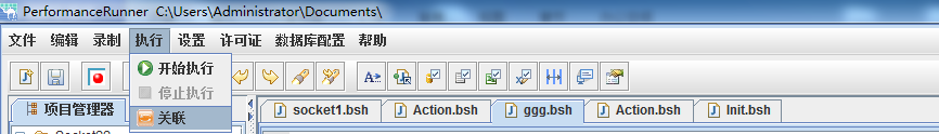 2、對(duì)于HTTP協(xié)議,在回放之前要先做關(guān)聯(lián)。方法是點(diǎn)擊【執(zhí)行】菜單中的【關(guān)聯(lián)】菜單項(xiàng)