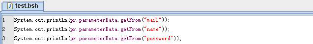 Test.bsh腳本比較簡單,從parameterData中把param的結(jié)果取出并打印出來,這里調(diào)用的是getFrom命令。