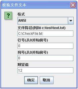 校驗(yàn)文件文本的腳本命令為checkFileText(See 1.4.7)命令,校驗(yàn)文件文本對話框如下圖所示: