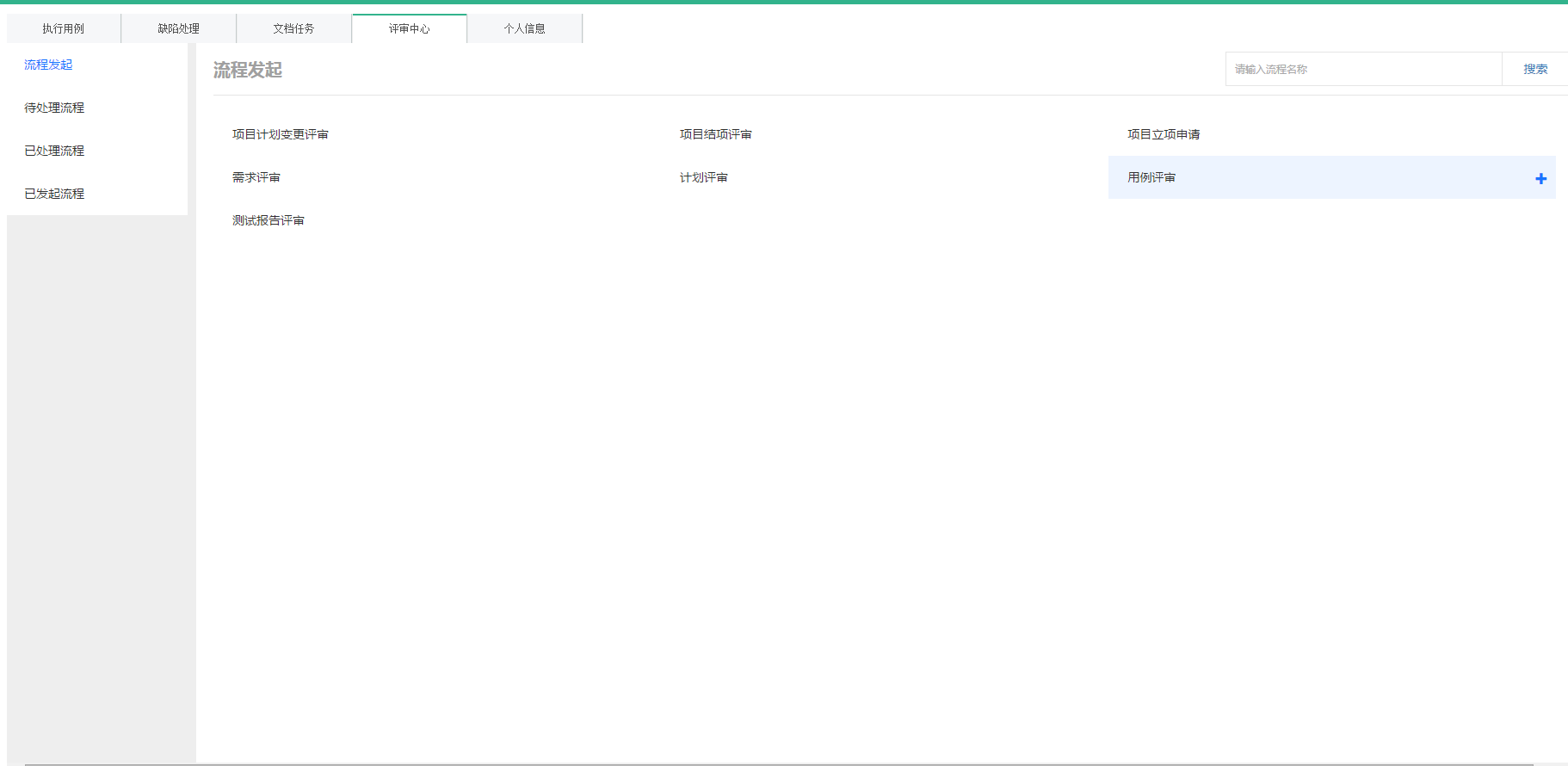 用例導(dǎo)入之后,測(cè)試工程師test4、test5、test7要對(duì)用例發(fā)起評(píng)審。進(jìn)入到【個(gè)人中心】-【評(píng)審中心】頁面,點(diǎn)擊用例評(píng)審的“+”按鈕