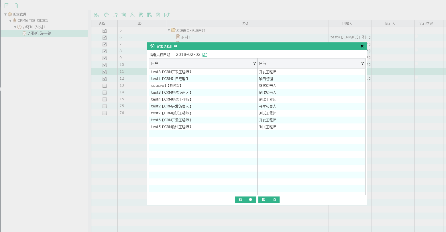 【分配執(zhí)行人】按鈕,彈出選擇用戶界面,指定執(zhí)行日期,雙擊測試工程師或者選中測試工程師點擊【確定】按鈕,分配執(zhí)行人成功。