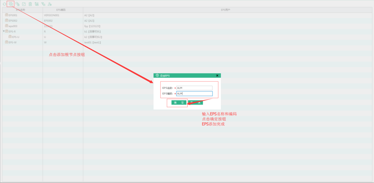 點擊添加根節(jié)點圖標,進入創(chuàng)建EPS頁面,輸入EPS信息,點擊確定按鈕完成添加。