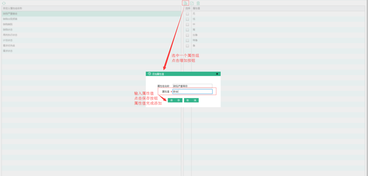 點(diǎn)擊【數(shù)據(jù)字典】,進(jìn)入數(shù)據(jù)字典模塊,這里主要是對項(xiàng)目模塊單選屬性,對屬性值進(jìn)行添加、刪除和修改的操作。