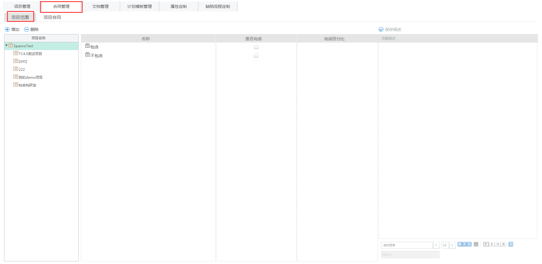 點(diǎn)擊【項(xiàng)目范圍】模塊,進(jìn)入到項(xiàng)目范圍模塊
