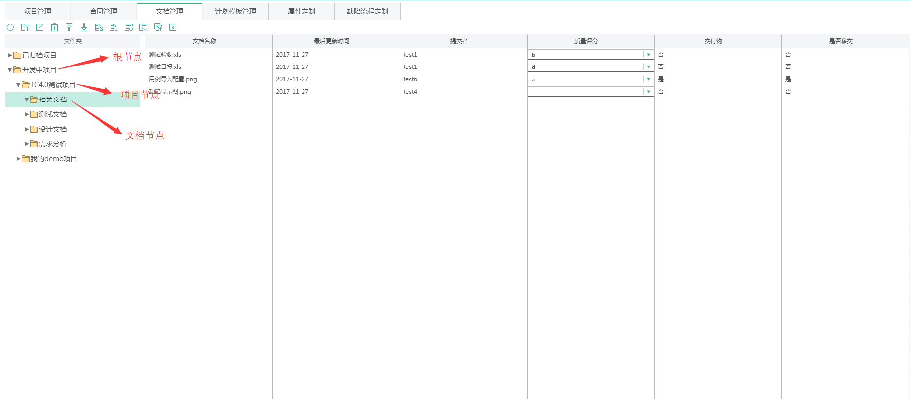 節(jié)點(diǎn)分為根節(jié)點(diǎn)、項(xiàng)目節(jié)點(diǎn)、文檔節(jié)點(diǎn)。