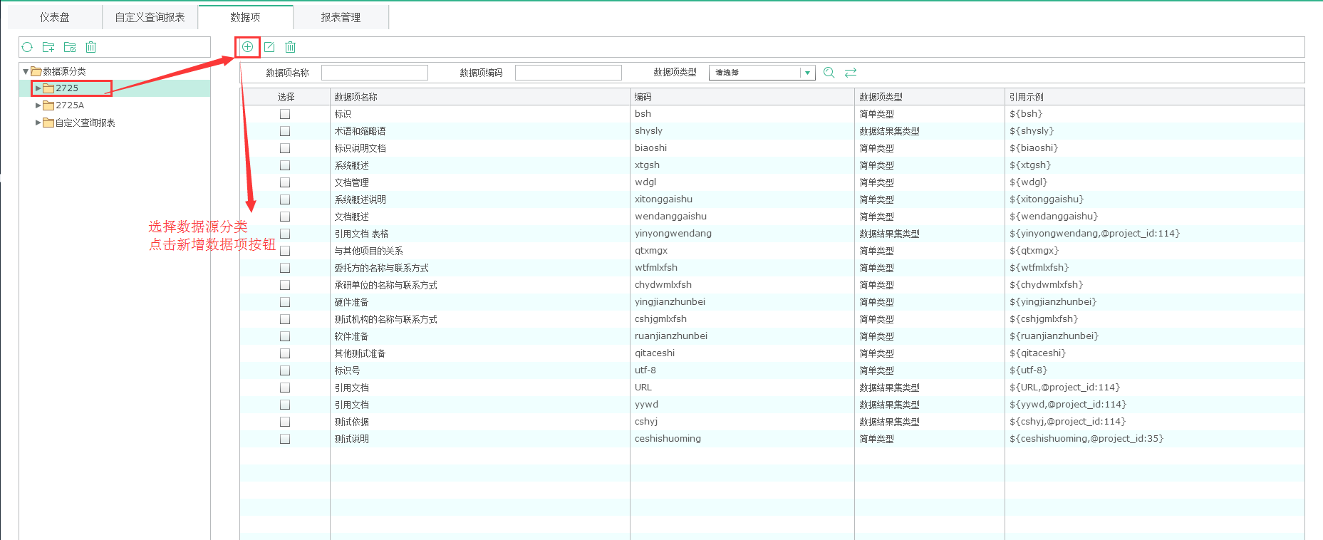 選中數(shù)據(jù)源分類,點擊新增數(shù)據(jù)項按鈕,進(jìn)入到新增數(shù)據(jù)項頁面
