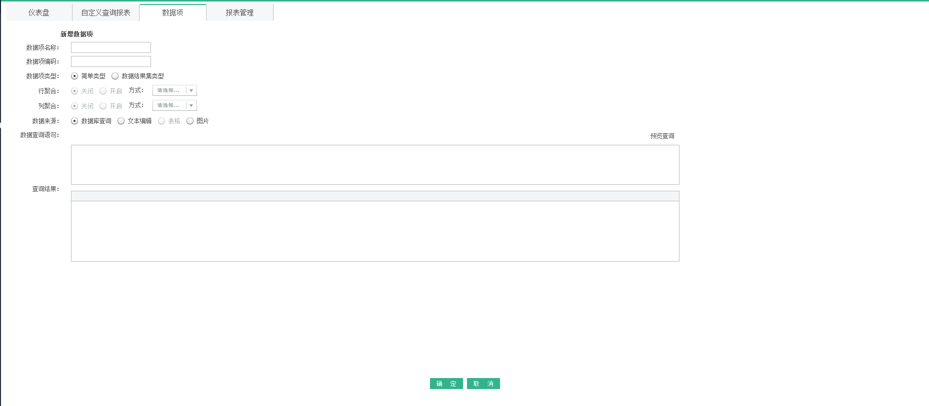 顯示數(shù)據(jù)查詢結(jié)果,用列表的形式展現(xiàn)結(jié)果,驗證用戶查詢目標(biāo)與查詢結(jié)果是否一致,查詢語句是否有誤,確認(rèn)無誤后,點擊【確定】保存新增數(shù)據(jù)項,點擊【取消】則撤銷本次操作回到數(shù)據(jù)項界面