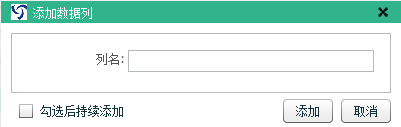 在【表格】編輯框中,點擊【新增列】調(diào)出添加數(shù)據(jù)列界面,輸入列名,該界面有持續(xù)添加功能,輸入列名后可在其下方框中勾選,勾選后可持續(xù)添加數(shù)據(jù)列,編輯完成列名后,點擊【添加】執(zhí)行添加操作,為表格添加一個或多個列名