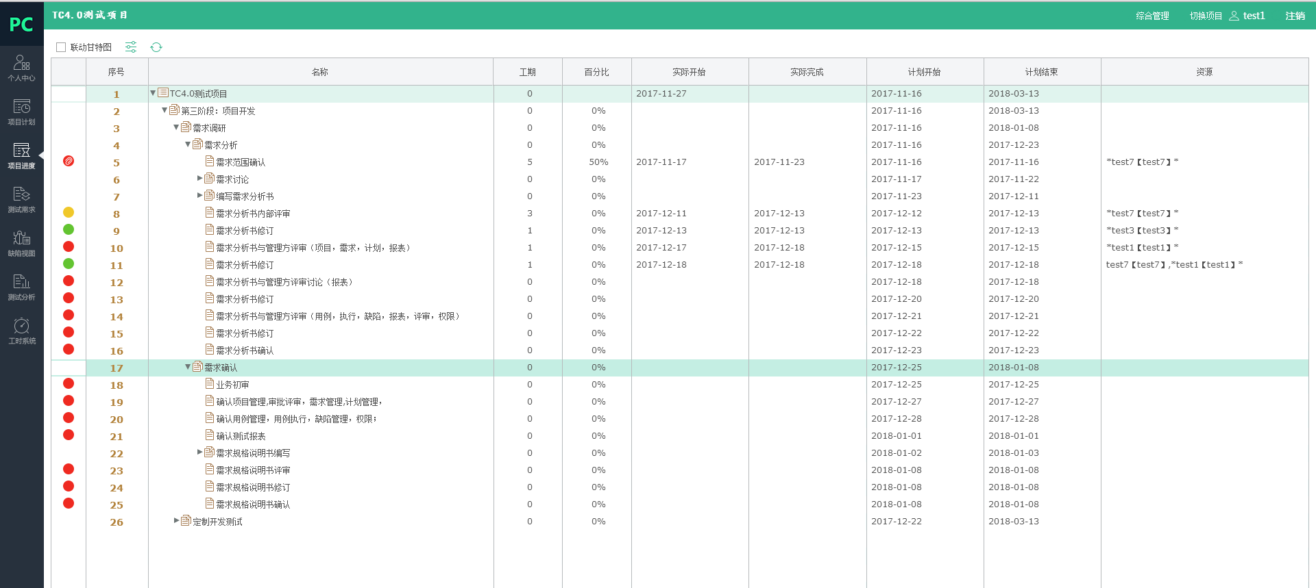 可以在該頁面進行工期和百分比的改變,從而達到監(jiān)控項目進度的目的。