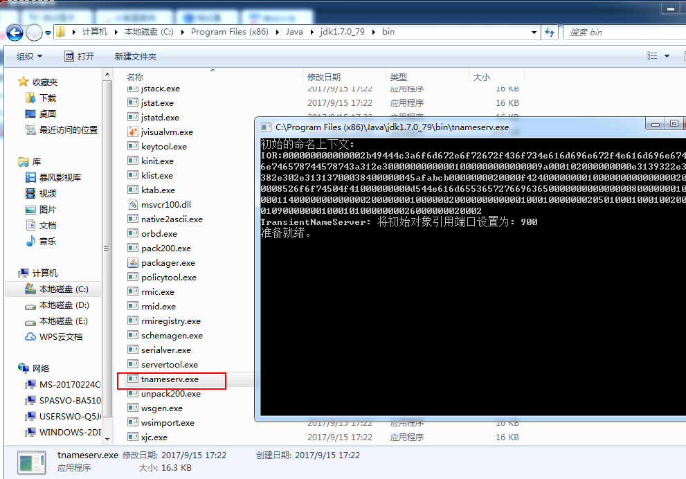 5、配置完成后進(jìn)入TestCenter服務(wù)器JDK的bin目錄(例如C:Program Files (x86)Javajdk1.7.0_79in)下開啟Tnameserv服務(wù)。