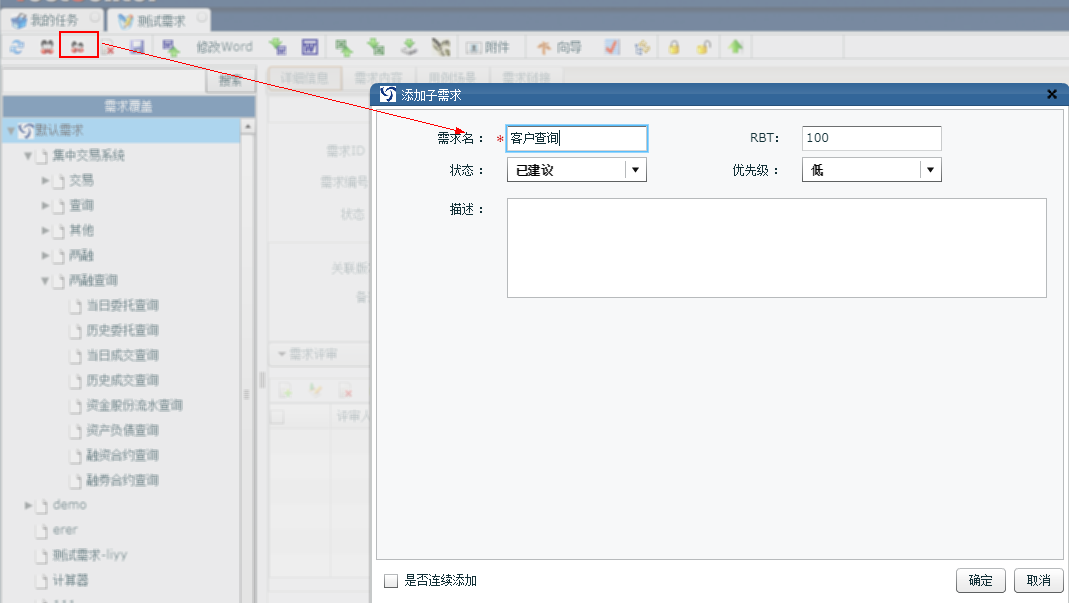 點(diǎn)擊進(jìn)行測(cè)試需求的新建 |