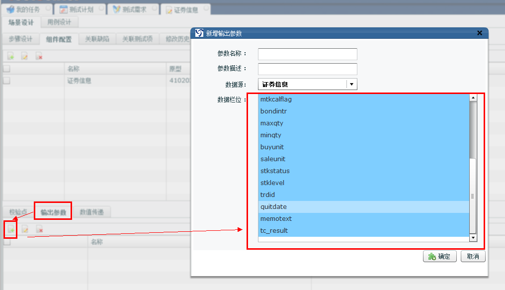 1. 點(diǎn)擊添加 2. 選中輸出參數(shù) 3. 點(diǎn)擊確定,輸出參數(shù)添加成功 |