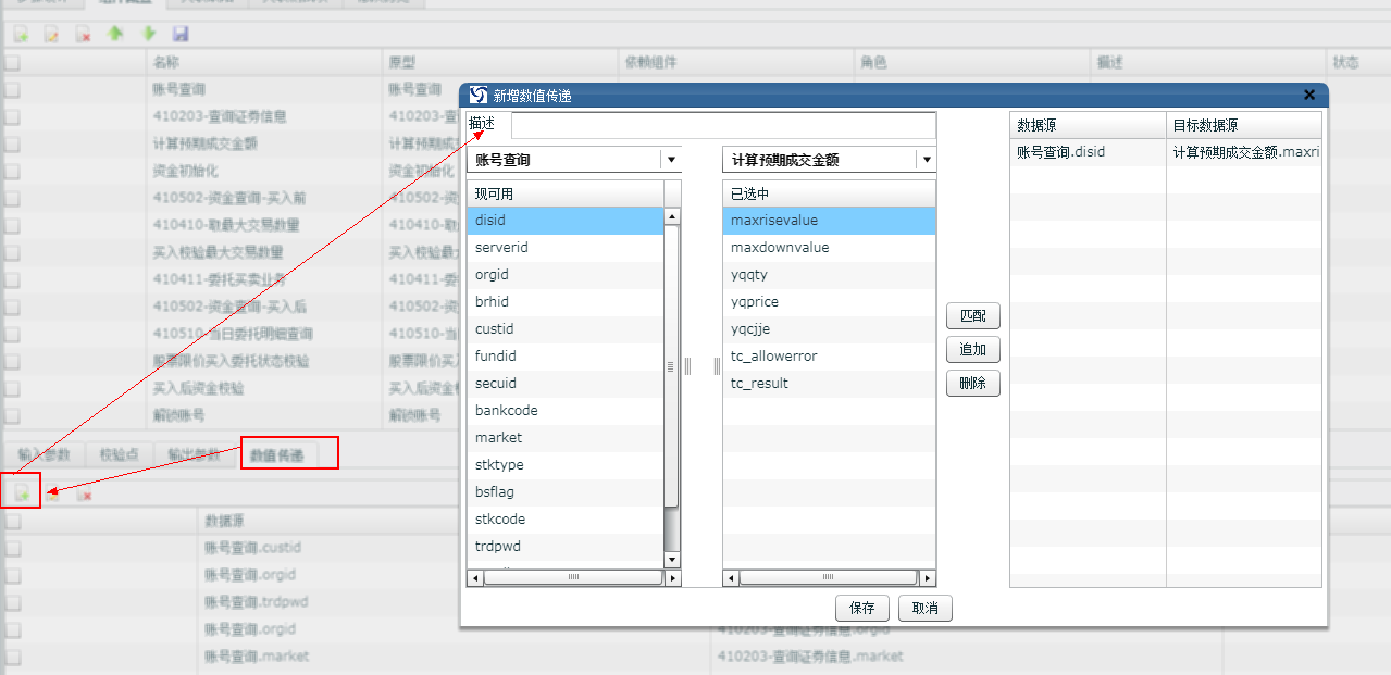 1. 點(diǎn)擊添加數(shù)值傳遞 2. 選中組件1中的參數(shù) 3. 選中組件2中的參數(shù) 4. 點(diǎn)擊確定,數(shù)值傳遞設(shè)置成功 |