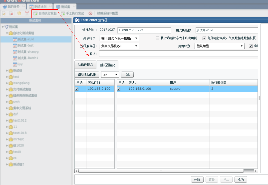 上面流程圖可以看出,進(jìn)行自動(dòng)執(zhí)行是需要借助TestAgent將AutoRunner與TestCenter進(jìn)行連接實(shí)現(xiàn)聯(lián)跑流程。所以自動(dòng)執(zhí)行前我們參照3.2.4章節(jié)進(jìn)行TestAgent配置與啟動(dòng)。之后可以按照以下步驟發(fā)起用例執(zhí)行。