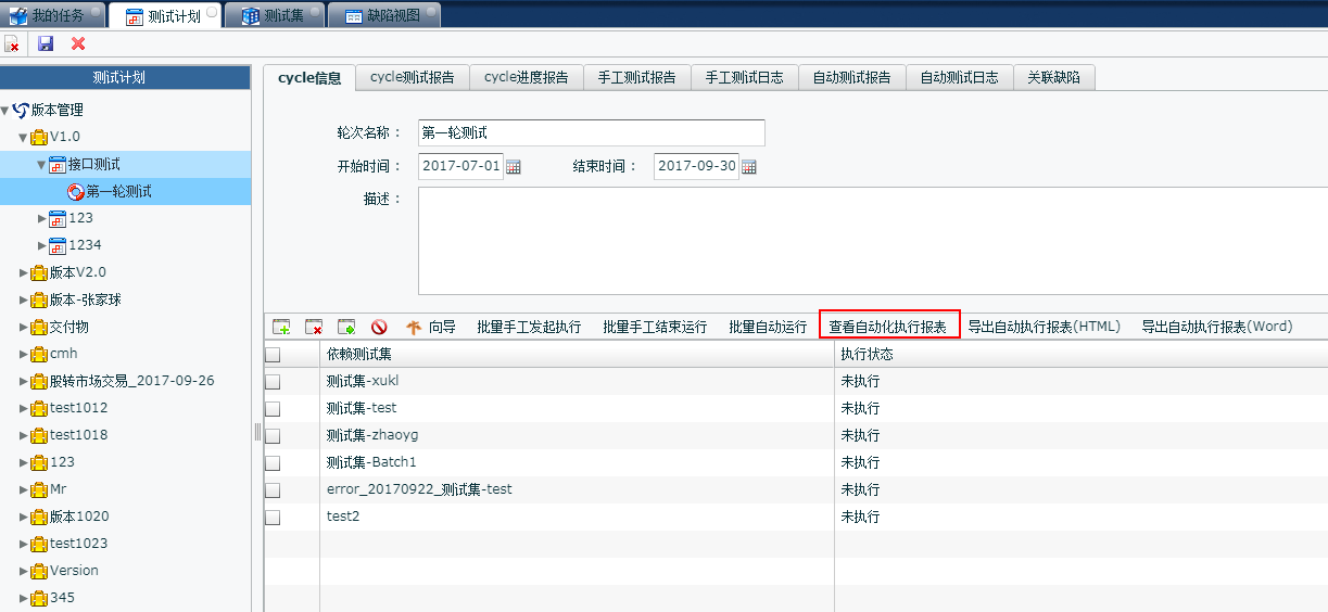 查看輪次下的測(cè)試報(bào)告 |