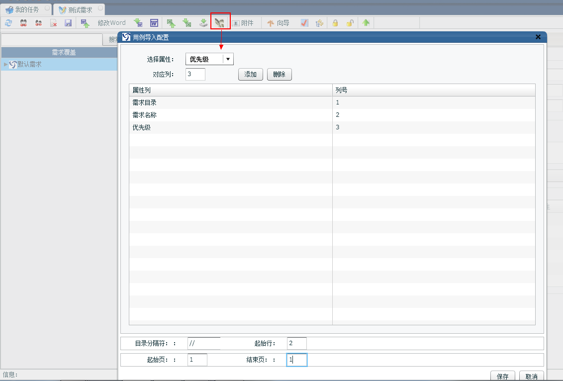 7. Excel文件配置成功后點(diǎn)擊需求導(dǎo)入,提示導(dǎo)入成功,展開默認(rèn)需求節(jié)點(diǎn)顯示導(dǎo)入成功的需求信息 |