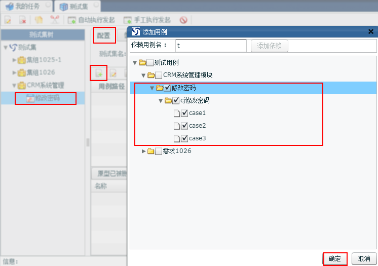 3. 點(diǎn)擊新增關(guān)聯(lián)用例 4. 展開(kāi)測(cè)試用例組,勾選需要添加的用例 5. 點(diǎn)擊確定添加測(cè)試集用例成功 6. 展開(kāi)用例路徑展示相應(yīng)添加的測(cè)試用例 |