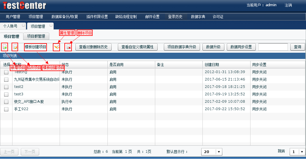 點擊【項目管理】進入項目管理模塊,【項目管理】模塊分為項目管理和項目群管理,項目管理主要是對項目進行新增、修改、刪除項目以及項目的屬性管理數據升級等操作。