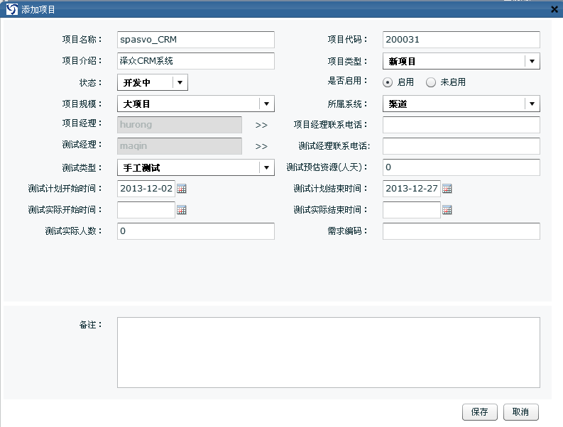 其中項目名稱,項目代碼,項目經理,測試計劃開始時間,測試計劃結束時間為必填項,點擊保存,即可成功創(chuàng)建項目!