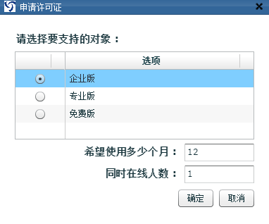 詳細操作:分別選擇要支持的對象,使用期限和設(shè)置同時在線人數(shù)。點擊確定,選擇保存路徑,保存生成的許可證申請文件(.rep文件)。把該文件發(fā)給我們的技術(shù)支持(support@spasvo.com)進行許可申請,等待我們的技術(shù)支持回復給您許可證導入文件(.lic文件)。