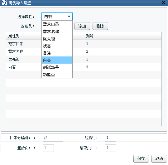 導(dǎo)入模板配置,進(jìn)行需求模板配置,選擇屬性對(duì)應(yīng)列,添加,保存: