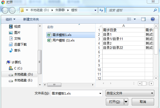 需求模板配置完以后,設(shè)置與模板相同格式的excel需求文檔,點(diǎn)擊