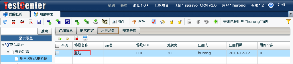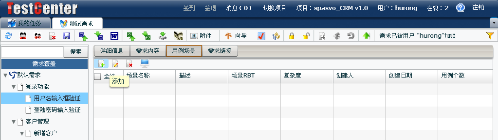 點(diǎn)擊【測(cè)試需求】,在【測(cè)試需求】模塊的用例場(chǎng)景為對(duì)應(yīng)的需求添加場(chǎng)景: