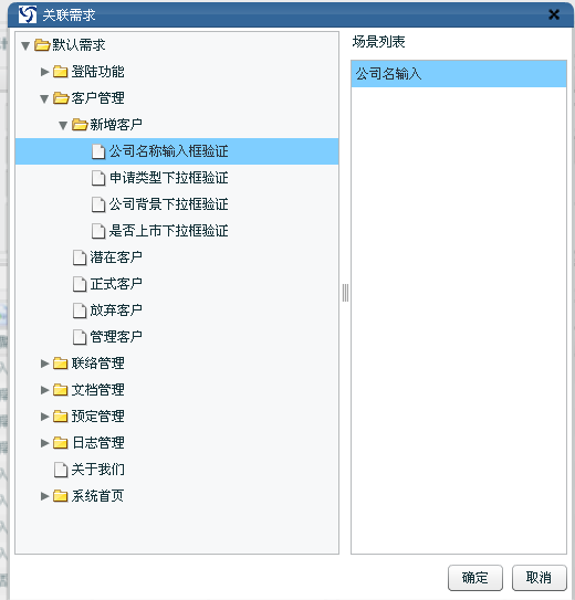 選擇要關(guān)聯(lián)的需求(該需求已經(jīng)設(shè)計(jì)了場(chǎng)景),選擇場(chǎng)景,點(diǎn)擊確定關(guān)聯(lián)成功。