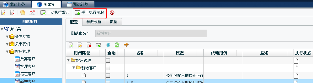這里以在【測試集】模塊發(fā)起手工執(zhí)行為例: