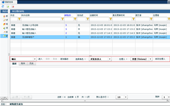 點擊“進入”進行編輯,測試負(fù)責(zé)人確認(rèn)是否為缺陷后,選擇角色和處理人,點擊“保存”,將缺陷交給下一個環(huán)節(jié)的處理人