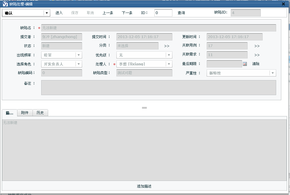 除了按照上面的方法處理缺陷外,也可以雙擊缺陷進入快速處理界面: