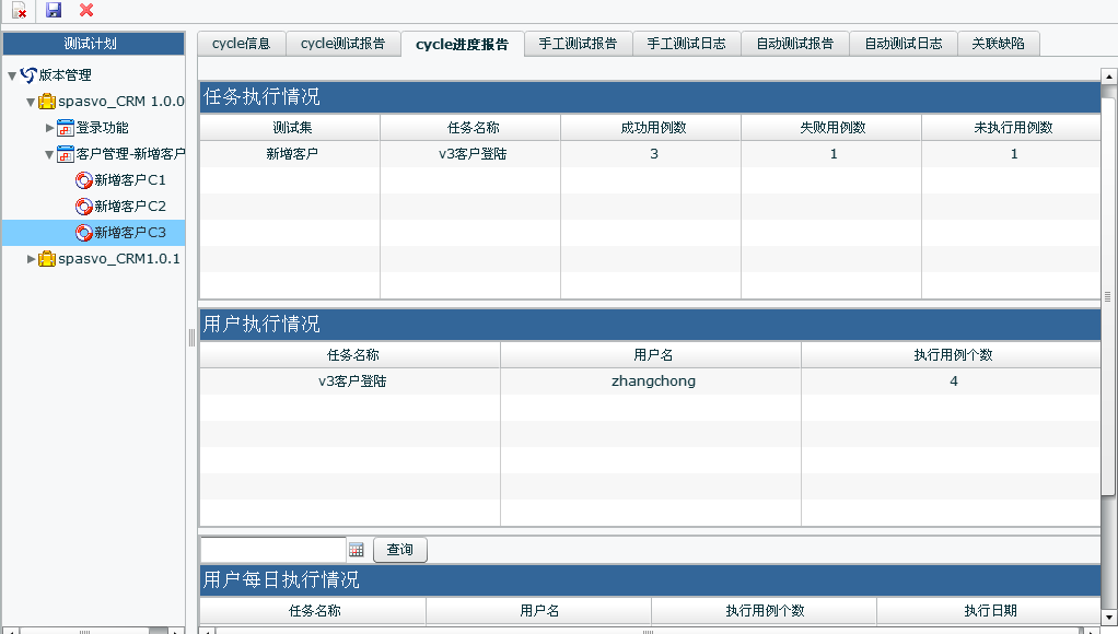 進入【測試計劃】,選擇對應(yīng)的輪次,有一個進度報告,可以通過進度報告了解項目進度。