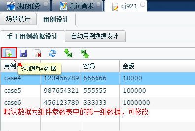 添加默認(rèn)數(shù)據(jù),定義用例名稱--保存,可配置多條數(shù)據(jù),對(duì)應(yīng)生成多條用例