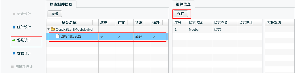 進(jìn)入“場(chǎng)景設(shè)計(jì)”,選擇場(chǎng)景,點(diǎn)擊“保存”保存組件信息