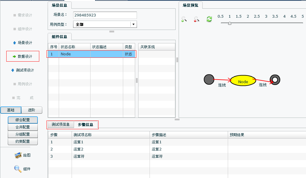 進(jìn)入數(shù)據(jù)設(shè)計(jì),雙擊組件名稱,自動(dòng)添加“測(cè)試項(xiàng)信息”與“步驟信息”