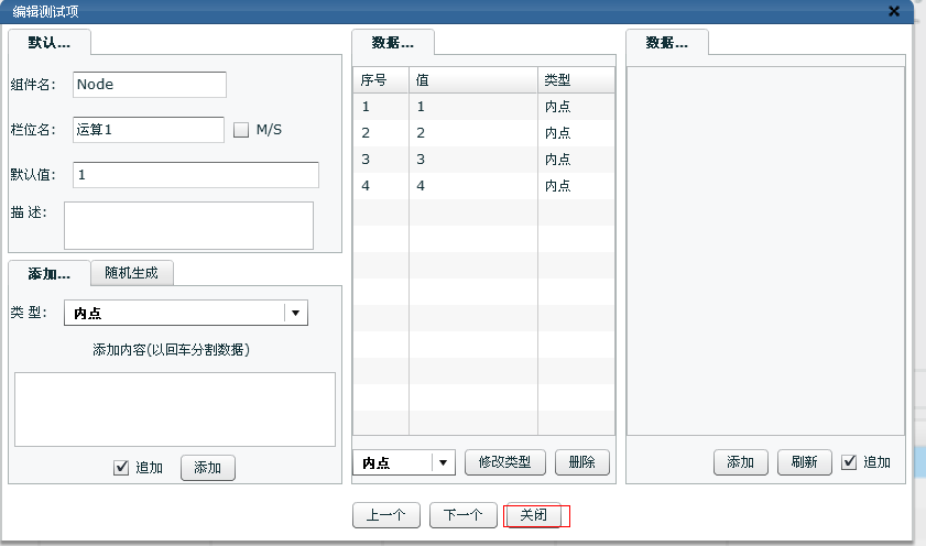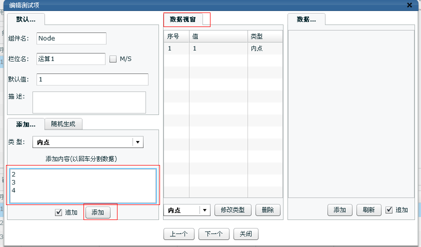 雙擊測(cè)試項(xiàng)信息添加數(shù)據(jù),添加內(nèi)容后,點(diǎn)擊“添加”將內(nèi)容加入數(shù)據(jù)點(diǎn)擊“關(guān)閉”完成添加