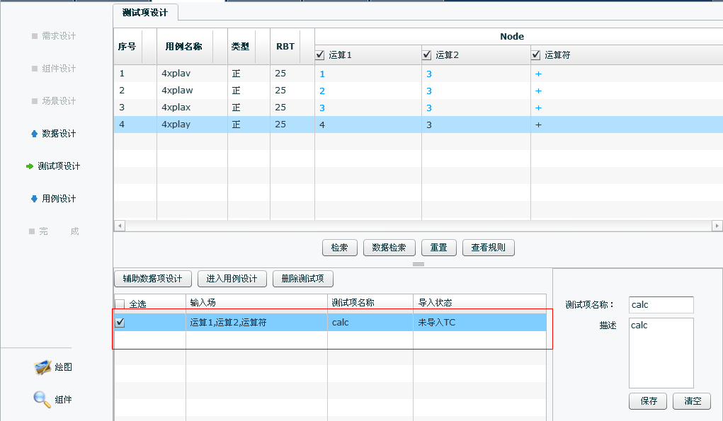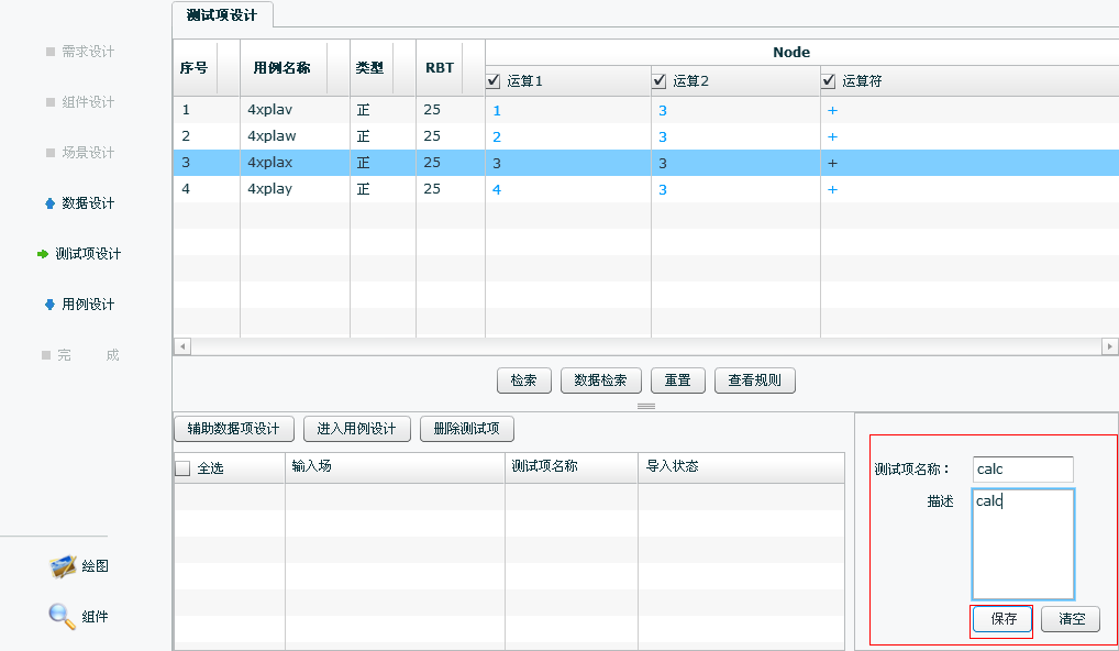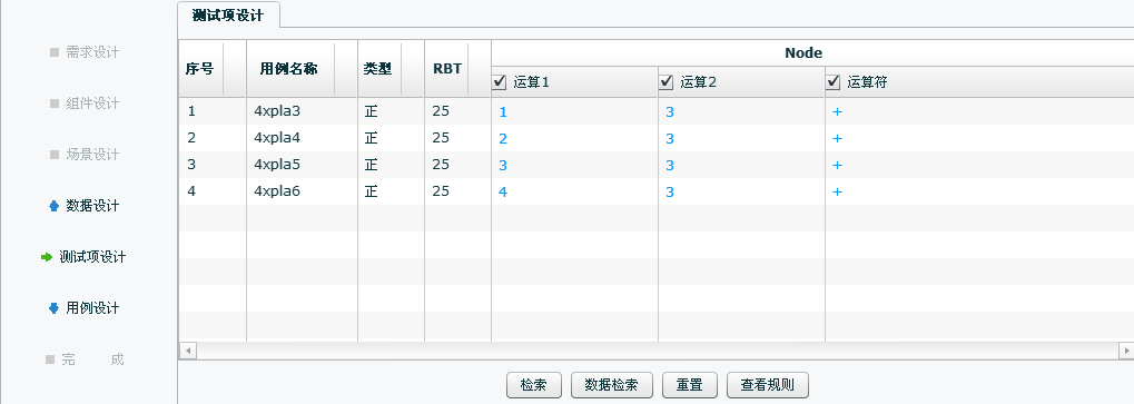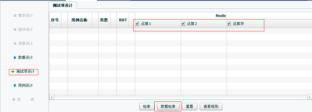 測(cè)試項(xiàng)設(shè)計(jì):勾選測(cè)試項(xiàng)后,點(diǎn)擊檢索