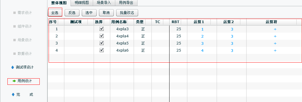 進(jìn)入用例設(shè)計(jì),勾選用例