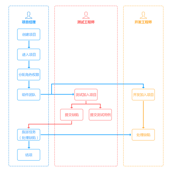 項目經(jīng)理創(chuàng)建項目、組建團隊、分配權(quán)限,相關(guān)職責人提交缺陷、處理缺陷,協(xié)助企業(yè)更好的進行測試項目的缺陷管理。