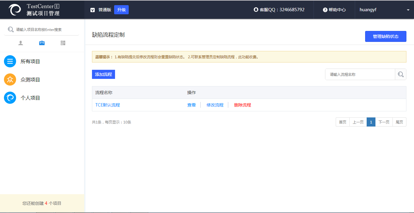 1、前提。若需要使用自己定義的角色及權(quán)限,請先至角色管理中定義好,方便定義流程時使用。若已經(jīng)定義好或者直接使用默認角色,則進入下一步驟 2、定義狀態(tài)。我們用缺陷狀態(tài)的變化來代表進度(也是流程),所以,在定義流程前需先定義缺陷狀態(tài)。將所需的狀態(tài)定義好之后,可以真正的進行流程的定制啦。注意:必須設(shè)定一個初始狀態(tài)。 3、流程定制。流程的組成:初始狀態(tài)、目標狀態(tài)處理角色、目標狀態(tài)。一條流程是缺陷由初始狀態(tài)變?yōu)槟繕藸顟B(tài)的過程,那么目標狀態(tài)處理角色呢,是指可以操作目標狀態(tài)的用戶角色。 |