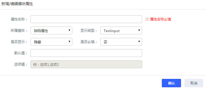 點(diǎn)擊進(jìn)入自定義模塊屬性,點(diǎn)擊新增屬性,進(jìn)行新增/編輯模塊屬性 |