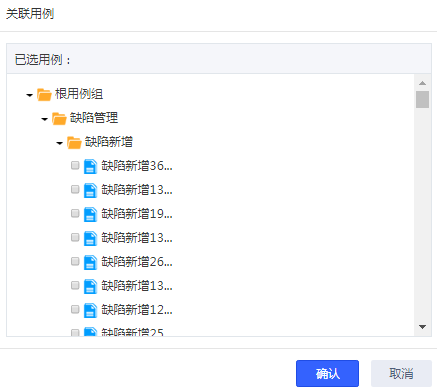 勾選缺陷,點擊關聯(lián)用例按鈕,可新增或修改該缺陷的關聯(lián)用例情況。關聯(lián)用例成功后,會顯示在缺陷詳情中。