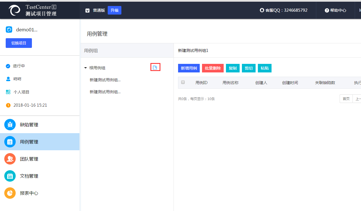 1)點擊上圖中紅色方框中的按鈕,新增用例組 |